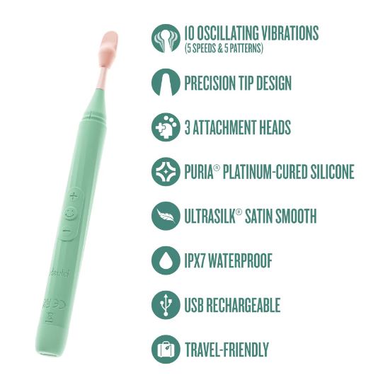 Embrace Sage, your invitation to luxurious pleasure. This elegant oscillating wand is designed to awaken your senses, delivering deep, rhythmic stimulation through 10 powerful vibration modes. Its precision tip focuses on pleasure exactly where you crave it, while three interchangeable attachments offer endless ways to explore. Crafted with Puria platinum-cured silicone and wrapped in UltraSilk, Sage is irresistibly smooth, 100% body-safe, and designed for indulgence. Choose your favorite attachment, then glide it over the desired area to add targeted stimulation and explore a variety of unique sensations, solo or with a partner. IPX7 waterproof for limitless exploration and USB charging for effortless pleasure, let Sage take you there, wave after wave.Color: GreenMaterial: ABS / SiliconeLength (Inches): insertable , 7.8Circumference (Inches):Battery Runtime: Up To 45 Minutes10 Oscillating Vibrations (5 Speeds & 5 Patterns)Precision Tip With 3 Attachment HeadsCrafted With Puria, Platinum-Cured SiliconeWrapped In UltraSilk, Satin Smooth FeelIPX7 Waterproof & USB Rechargeable