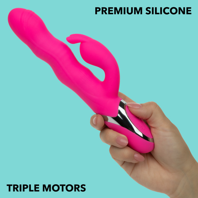 Ready to ride the wave of next-level pleasure? The Enchanted Wave Action Bunny takes you on a rhythm-fueled adventure with triple motors, a flickering teaser, and deep, undulating shaft motion that feels anything but ordinary. This dual massager delivers power, precision, and a whole lot of ooh yes.The shaft features 4 functions of rhythmic wave action, mimicking a sensual undulation for a deeply satisfying internal massage. Paired with 12 vibration, pulsation, and escalation modes in the shaft and flickering teaser, no hot spot goes untouched.Made from body-safe silicone and fully submersible (IPX7), it’s perfect for tub or shower play. A built-in memory chip saves your last-used function, while LED-lit push-button controls and instant on/off make adjustments smooth and intuitiveeven in the dark.Charge fully in just 1.75 hours via USB for up to 45 minutes of indulgent vibration. The Enchanted Wave Action Bunny isn’t just another vibeit’s a magical, wave-riding experience your body will thank you for.