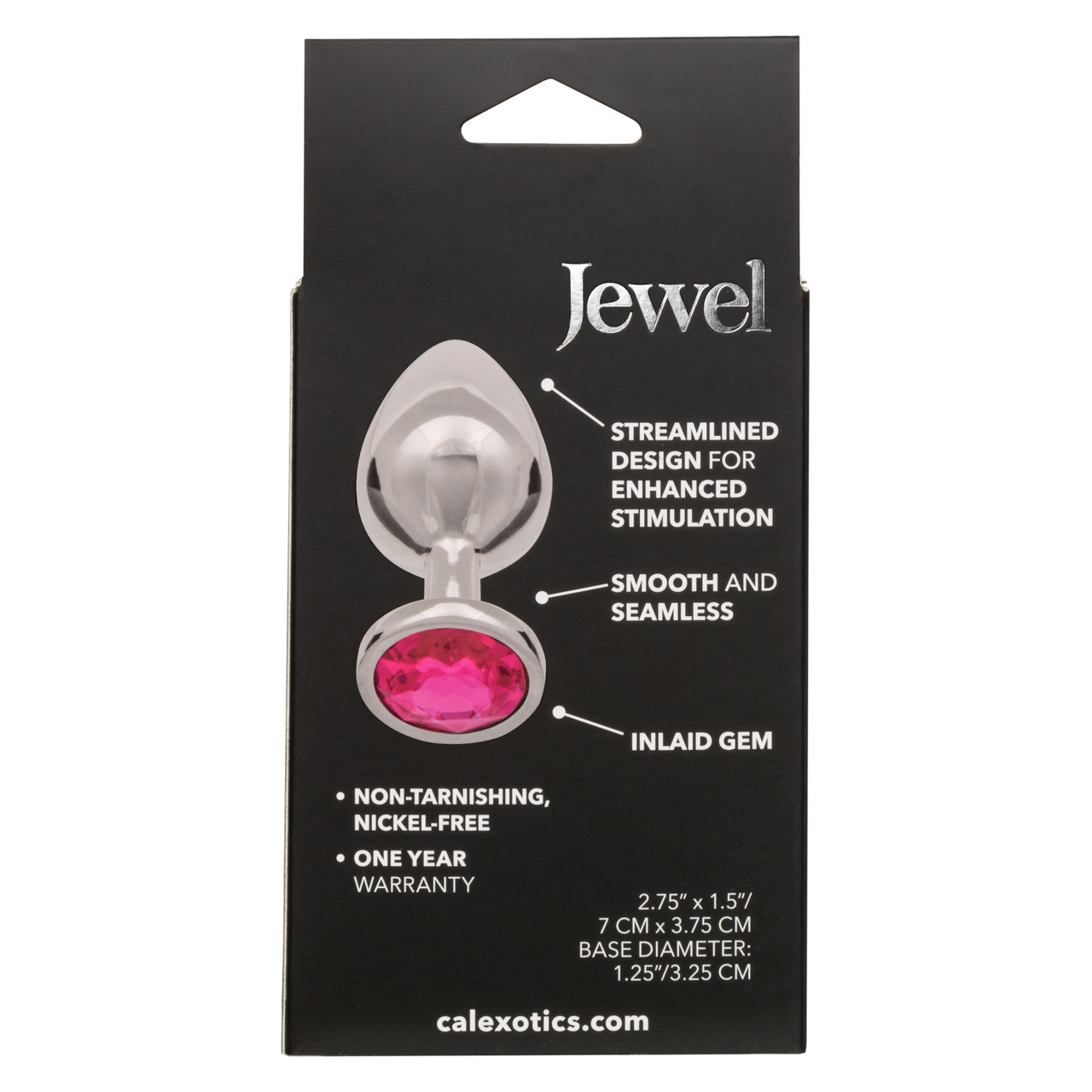 Jewel Large Rose Anal Plug from California Exotic Novelties. Introducing the Jewel Large Rose Plug, an exquisite and captivating addition to your intimate collection. This luxurious Anal Plug features a smooth and seamless metallic construction that ensures effortless insertion and incredible stimulation. Designed with a streamlined shape, it targets your most sensitive areas, delivering intense and pleasurable sensations. The sparkling Gem accent adds a touch of elegance and visual appeal, making it a truly mesmerizing piece. Crafted from non-tarnishing, Nickel free materials, this Anal Plug is not only safe for your body but also ensures long lasting durability. Its larger size offers a more satisfying and fulfilling experience for those seeking a bolder sensation. Indulge in the opulent pleasure and alluring aesthetics of the Jewel Large Rose Plug. Explore new heights of pleasure and embrace the luxurious sensations it provides, making each intimate moment truly unforgettable. Specifications: SKU SE-0438-10-3. Color Pink Gem, Silver Plug. 1 Year Warranty. Features: Phthalate free. Material type: Aluminum Alloy with Chrome Plating Anal Plug, Acrylic Resin Gem. Measurements: 2.75 inches by 1.5 inches Anal Plug. 1.25 inches diameter base. Bulk weight 3.2 ounces. Package 4.1 ounces. Package: 2 inches by 3 inches by 6.5 inches. Categories: Anal Toys, Large and Huge Butt Plugs, Prostate Massagers, P-Spot Stimulators. 2024.