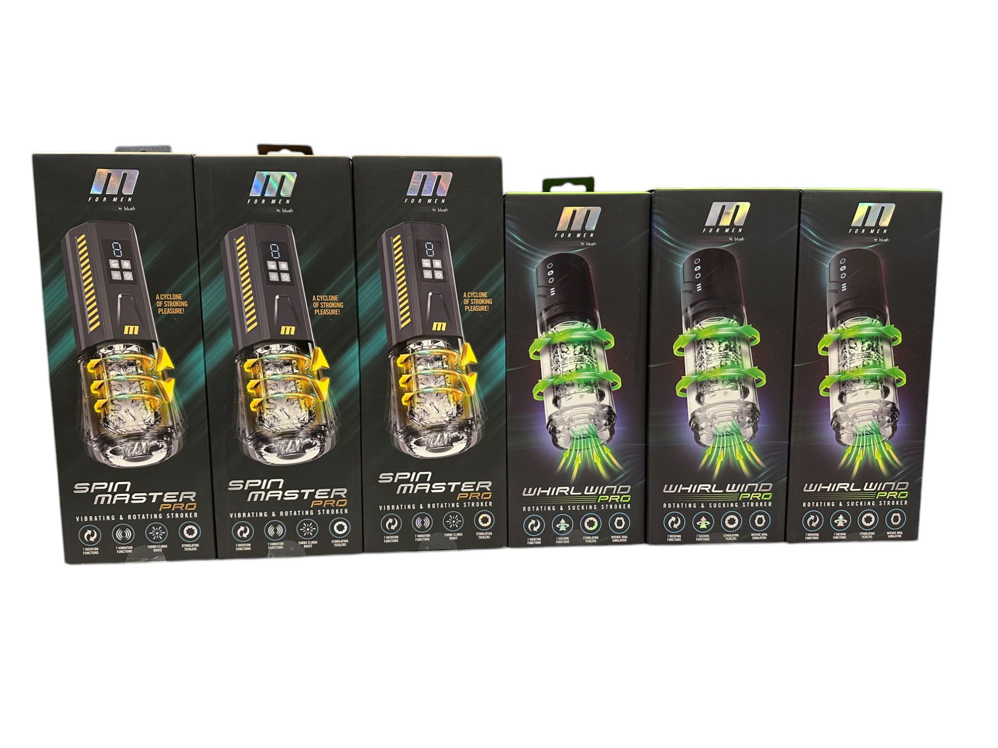 M FOR MEN AUTO MERCHANDISING KIT From BLUSHContains 5 Spin Master Pro Vibrating & Rotating Stroker and 5 Whirl Wind Pro Rotating & Sucking stroker