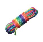 Brighten up your BDSM play with this neon rainbow-colored bondage rope! Perfect for kinbaku or shibari rope tying, this versatile rope is ideal for partner play or solo practice. With a twisted, coreless design, it offers both strength and flexibility while being more resistant to slipping. The silky-soft nylon feels gentle against the skin and is durable enough to be washed. Metal-capped ends ensure that the rope stays nicely wound and intact, adding a splash of vibrant color to your collection or photoshoots. As a safety precaution, keep safety-shears on hand every time you have a scene. Key Features:Bondage Rope: Perfect for kinbaku or shibari rope tying in BDSM scenes! Great to use with a partner or for practicing alone.Twisted, Coreless Construction: Designed to be strong, flexible, and more resistant to slipping.Silky Soft and Durable: This silky rope feels soft against the skin and is non-abrasive. Made out of nylon, it’s also durable and can be washed.Vibrant Color: This rope is vibrant and bright with a rainbow of colors that stand out! Perfect as a fun addition to your collection or for photoshoots.Metal Capped Ends: The nickel-free, metal caps on the ends keep the ends from unraveling so you can keep your rope nice and wound tight.Measurements:Overall length: 32 feetRope width: 7.6mmMaterials: Nylon, metal capsColor: Rainbow