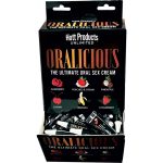 ORALICIOUS oral sex cream brings a whole new level of excitement when it comes to Intimate play! This amazing cream not only numbs and tickles the throat, but also has a smooth/cooling rich taste and aroma, which provides both partners a euphoric experience, that will leave you both hungry for more! Massage it in, lick it off and feel your Erogenous Zones come alive!144pcs Display of 2ml TubesFlavors Include:Raspberry ParfaitPina ColadaBanana SplitStrawberry SwirlPeaches & CreamCherries JubileeFeatures:Water Soluble FormulaNon StickyMoisturizing2ml Tubes (trial size!)