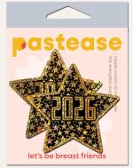 PASTEASE HAPPY NEW YEAR 2026 BLACK & GOLD STAR NIPPLE