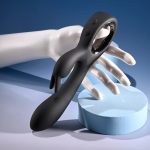 Late Night Bunny is the perfect excuse to call it a night! This powerful dual Vibrator is always ready for a late-night booty call with its 2 state-of-the-art motors that work independently for a custom dual experience one in the gently curved swelling main shaft, and one in the hard-working rabbit. Made from sleek black body-safe silicone with a stylish and comfortable chrome ring handle, both shafts are flexible to move in harmony with your body. Discover the pleasures that await you after dark!Panel Details Play with me (key feature): Dual VibratorVibration: 10 speeds & rhythms, 2 motors controlled separatelyMaterial: Body-safe Silicone & ABS, Phthalate & Latex freeWaterproof & Submersible: YesWarranty: Five yearsRechargeable: USB cable included Size SpecsHeight: 7.83, Depth: 2.31″, Width: 1.15″Insertable length 4.5, Insertable diameter 1.36