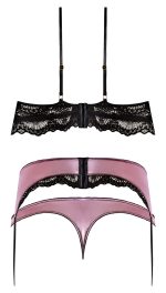 Sensual Desires Bra, Cincher and Thong Mauve L/XL from Magic Silk Lingerie. From the Exposed by Magic Silk collection, this style includes: a lace demi bra featuring underwire and hook & eye closure, elastic adjustable shoulder straps with gold tone silders, a satin cincher with attached adjustable garter straps and gold tone sliders, hook and eye closure in the back, and a matching lace and satin thong. Deco inspired black scalloped stretch lace is paired with a rich mauve silky soft stretch satin. Fabric content: 76% Nylon, 24% Spandex. Care: hand wash cold water. No Bleach. Dry flat. Ladies sizes L/XL large to extra large. Dress sizes 16 to 18. Categories: Lingerie, Clothing, Bra Sets, Women’s Underwear, Naughty Role Play. 2023.