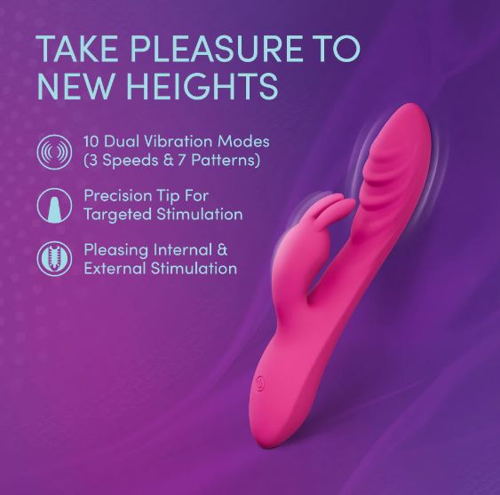 Surrender to the call of Wild Lust. Designed to indulge your deepest cravings, this seductive rabbit vibrator delivers 10 dual vibration modes, ranging from teasing pulses to toe-curling power. Its curved, pleasure-ridged shaft heightens G-spot ecstasy, while flexible rabbit ears surround your clitoris with waves of blissful stimulation, igniting pleasure inside and out. Crafted from 100% body-safe liquid silicone and finished with a silky UltraSilk touch, Wild Lust glides effortlessly across your skin for a luxurious experience every time. With splashproof versatility and USB rechargeability, its ready whenever desire strikes,whether for a secret escape or an all-night adventure. Let your passion take over.