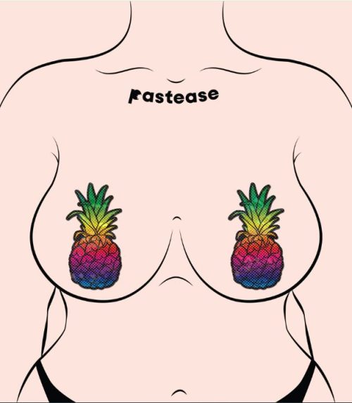 Introducing Rainbow Pineapple Sparkling Breast Pasties by Pastease: Tropical Vibes with a Cheeky Twist!Add a splash of tropical fun to your style with our Rainbow Pineapple Pasties! These sparkling disco pineapples arent just for summer vibestheyre also a playful nod to swinger enthusiasts when flipped upside down.Dimensions: 2.2″ x 4″Coverage: 2.1″Vibrant Rainbow Pineapple DesignStand out in any crowd with dazzling rainbow pineapples crafted from sparkling disco material. Whether youre going for bold tropical glam or something a little more cheeky, these pasties are designed for playful self-expression.