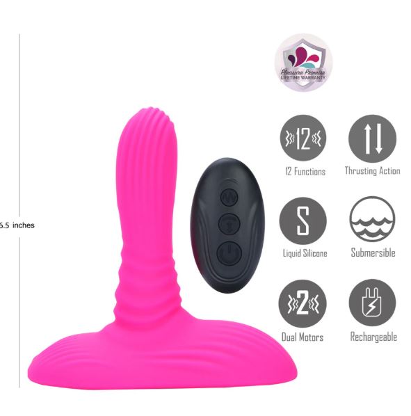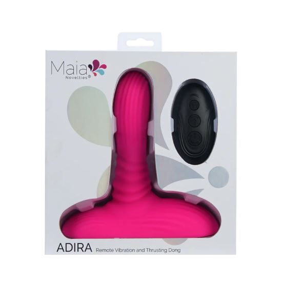 The ADIRA Vibrating and Thrusting Dong includes a remote control for effortless operation. Independent control featuring 3 thrusting speeds and 9 vibration levels. Crafted from 100% body-safe silicone, ADIRA ensures a safe and comfortable experience every time. With a strong suction cup base, you can enjoy hands-free fun wherever you desire.Measuring 6-1/2 inches in length and 1-1/2 inches in width, and with an insertable length of 5 inches, ADIRA is perfectly sized and can be used for wet fun due to the submersible design. Rechargeable and includes a magnetic charge cable. Plus, with our Pleasure Promise Lifetime Warranty, you can indulge with peace of mind.FEATURES: 3-Thrusting Speeds, 9-Vibrating Patterns, Remote Control, Body Safe Silicone / ABS Remote, Submersible (Toy Only), Magnetic Charging with Cable Included, 6-1/2″ Length, 1-1/2″ Diameter, 5″ Insertable Length, 3/8 Thrust Length, PLEASURE PROMISE LIFETIME WARRANTY
