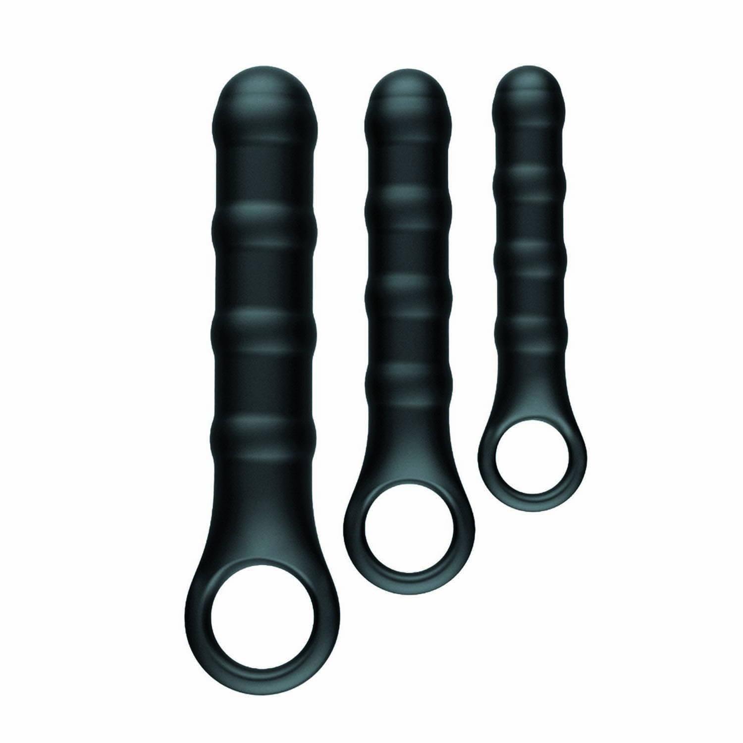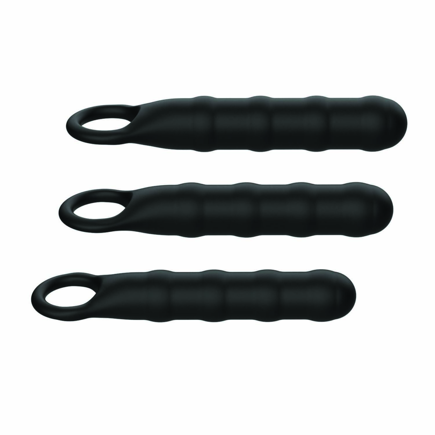 The Nasstoys Ass-Sation Anal Wand Training Kit is a three-piece set designed to help you explore penetration at your own pace with comfort and confidence. Each wand features a rounded tip for easy insertion and a series of ribbed textures that add extra sensation as you slide in and out. The sizes gradually increase, making this set perfect for beginners who want to build up slowly or for experienced players who enjoy variety. Whether you are interested in back-door play, front-door play, or just want to experiment with new sensations, these flexible yet satisfyingly firm wands offer approachable and pleasurable options. Every wand is made from body-safe silicone and comes with a sturdy retrieval ring that makes it easy to guide, control, and remove whether youre using it on yourself or a partner. Pair them with a water-based lubricant to enhance comfort and glide, especially as you move up in size. After play, wash with toy cleaner or mild antibacterial soap and let them dry fully before storing. The Ass Sation Kit is a fun, accessible way to explore what you like and learn how your body responds to different shapes and sensations.