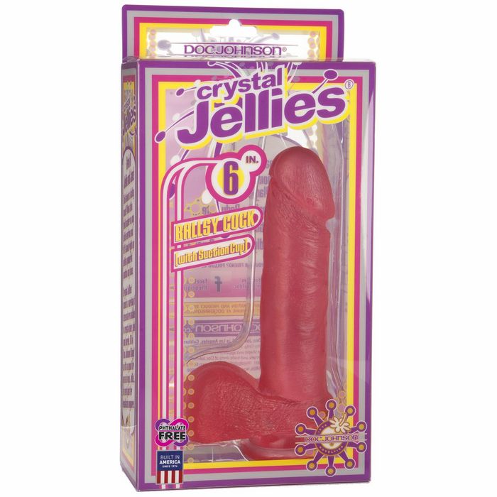 Crystal Jellie Ballsy Cock 6 inches Pink. Talk about ballsy cocks. Enjoy hands free play? The powerful suction cup base will hold onto any surface while you enjoy the ride. Crystal jellies comes in two sizes to fit all your needs and in two colors to match your mood. Choose from six or eight inches of pleasure in either pink or clear. This realistic penis shape dong has all the right veins and a set of balls to hold onto. Made of Doc Johnson’s exclusive Sil-A-Gel jellie material. Presented in an eye catching box that features Doc Johnson trademark design. Sil-A-Gel anti-bacterial, PVC, Jelly non-toxic, with suction cup base. Harness compatible with most o-ring strap on. Dimensions 7.70 inches long by 1.50 inches wide. A water based lubricant is recommended. Every product can effectively be cleaned with mild soap and water. Safe for anal, vaginal, g-spot and prostate massage. Doc Johnson Novelties The Great American Toy Company. Made in the USA. 16