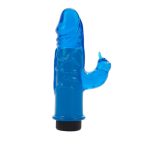 Crystal Playmate Blue Vibrator from California Exotic Novelties. Hop on to this Royal Blue Teaser and treat yourself to an indulgent evening. The Crystal Playmate Vibrator is crafted from heavenly soft jelly material to give you that smooth glide experience you love. This superior quality stimulator offers 2.75 inches of insertable length to tease and ease yourself into an incredible penetration experience. The superior head and ribbed underside are ready to provide you with additional orgasmic sensation. Run the ribs along your sensitive walls as you thrust for intensity that will drive you wild. Tickle and tease your clitoris with the sweet clitoral arouser. His tongue is extended and ready to lick you to a breathtaking finish! The vibrations turn his tongue into a flickering oral experience. This amazingly powerful stimulator features intense vibrations powered by 2 AAA batteries. To get started, insert the batteries into the base and push the on, off switch on the bottom to activate the stimulators single speed of impressively powerful vibrations. Use the dual stimulator as a teasing foreplay act or indulge in its intense vibrations to send you straight over the edge. No matter the flavor of your pleasure, this sensual and playful toy is eager to please. Experience the strong vibrations, incredible textures, and heavenly clitoral arouser for yourself! Superior quality, amazingly powerful stimulator with dual tongued arouser. Single speed with on/off switch. Safe and pure for body and pleasure. Made using phthalate free, non-toxic materials PVC Shaft, Clitoral Stimulator, ABS Plastic Cap. Vibrating sex toy requires 2 AAA batteries, not included. Do not leave batteries in the vibrator between uses. Vibrator shaft measures 3 inches long by 1.5 inches wide. Clitoral arouser measures 1.25 inches long by .75 inch wide. Bulk weight 3.7 ounces. Always clean before and after use. Crystal Playmate is a registered trademark for California Exotic Novelties. Sex toys and sexual wellness. Categories: Vibrators, Clitoral Stimulators, Rabbit Style Vibrators, Health and Beauty Aids, Sex Toys for Couples, Men, Women, G-Spot Clit Stimulators. 2023.