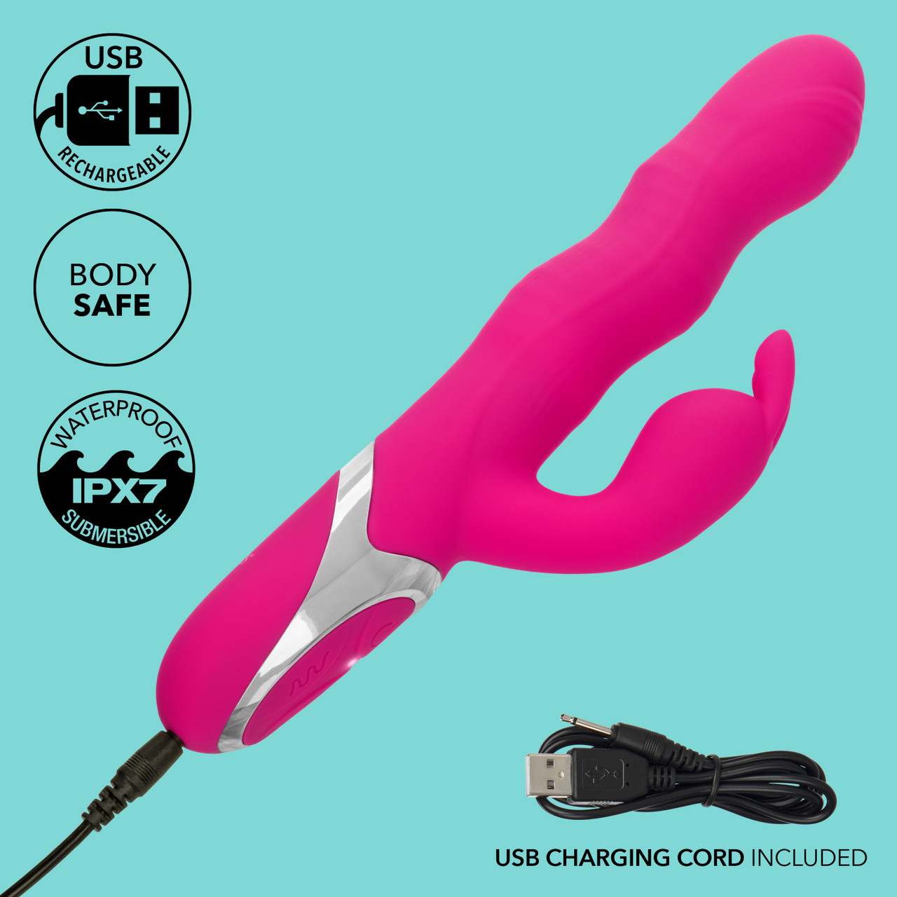 Ready to ride the wave of next-level pleasure? The Enchanted Wave Action Bunny takes you on a rhythm-fueled adventure with triple motors, a flickering teaser, and deep, undulating shaft motion that feels anything but ordinary. This dual massager delivers power, precision, and a whole lot of ooh yes.The shaft features 4 functions of rhythmic wave action, mimicking a sensual undulation for a deeply satisfying internal massage. Paired with 12 vibration, pulsation, and escalation modes in the shaft and flickering teaser, no hot spot goes untouched.Made from body-safe silicone and fully submersible (IPX7), it’s perfect for tub or shower play. A built-in memory chip saves your last-used function, while LED-lit push-button controls and instant on/off make adjustments smooth and intuitiveeven in the dark.Charge fully in just 1.75 hours via USB for up to 45 minutes of indulgent vibration. The Enchanted Wave Action Bunny isn’t just another vibeit’s a magical, wave-riding experience your body will thank you for.