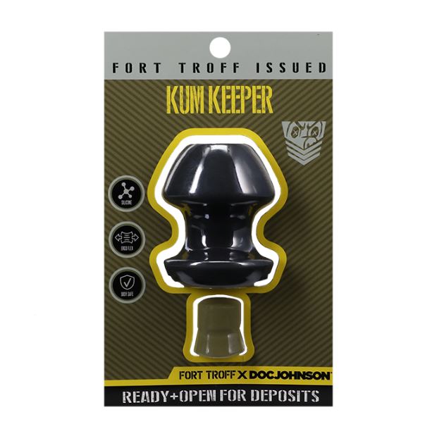 With the Kum Keeper, your hole ready and open for deposits. The outer piece is a classic grommet plug made of flexy premium silicone. Its tapered head ensures EZ entry and gets you open and feeling FULL. The removable stopper allows you to FILL UP with lubeor more. Connect a funnel, nozzle, or tube. And when you are ready, CORK IT. You wont spill a drop.