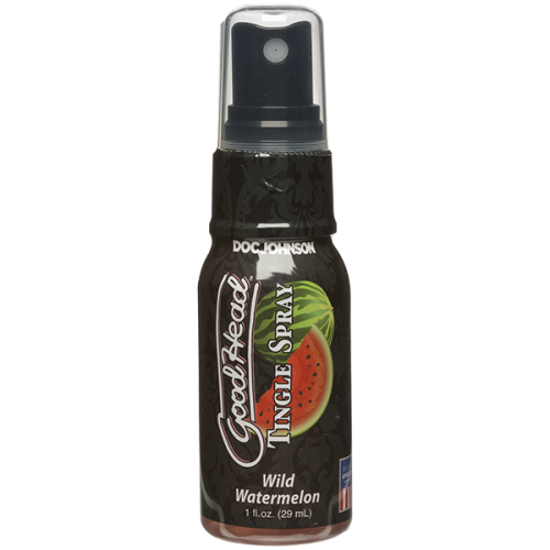 Goodhead Tingle Spray Wild Watermelon 1 fluid ounce from Doc Johnson. Intensify your blowjob with these tingling, teasing tasty BJ sprays. Doc Johnsons original Goodhead collection turned good head into great head, and now the flavors you love are available in convenient lickable sprays formulated to create a cool tingling sensation on contact. A variety of luscious flavors turn your lovers naughty bits into a tasty treat with no sugar or parabens. You will not be able to keep your hands or mouth off them! Product features: delicious lickable flavor. Easy to use spray application. Creates pleasurable tingling sensation. Contains no sugar or parabens. Vegan friendly. Body safe. Proudly, made in America.
