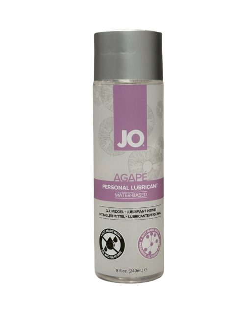 JO Agape 8Oz is our carefully Ph balanced, water-based lubricant that mimics the bodys natural moisture for a comforting glide during partnered, solo, or toy play. Ideal for those with more sensitive skin, it brings a light, natural feel to every intimate moment.