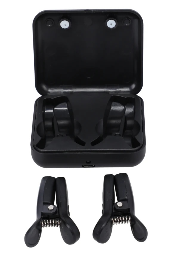 For when a pinch just isn’t enough! These rechargeable nipple clamps attach to your body and vibrate for intense pleasure. They come with an easy carrying case so they’ll never get lost, or even worse, run out of battery.Features:10 Vibration FunctionsStrong, Sturdy ClampsRechargeable Storage Case with Included USB CablePhthalate-free, Body-Safe