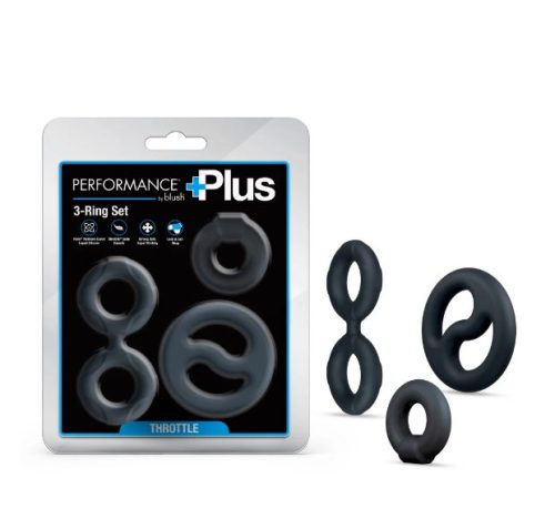 Maximize and boost pleasure with Performance Plus Throttle! This premium, versatile 3-ring set includes two snug rings and one cock & ball stretcher to enhance stamina, maintain prolonged erections, and extend your experience. Perfect for solo or couples play, Throttle supports stronger performance and more satisfying sessions. Made from Purio platinum-cured liquid silicone, each piece is strong, soft, and super stretchy for a secure, comfortable fit. The UltraSilk satin smooth finish feels great against the skin and makes removal just as easy as application. Whether youre adding intensity to a solo moment or sustaining the connection during partner play, this set delivers flexible options with reliable results. Throttle keeps you in control and ready to push pleasure further.3 Ring Set Including 2 Cock Rings & Ball StretcherStrengthen Stamina And Maintain Firmer ErectionsMade With Purio Platinum-Cured Liquid SiliconeWrapped In UltraSilk For A Satin Smooth FeelSuper Stretchy For A Comfortable, Secure Fit