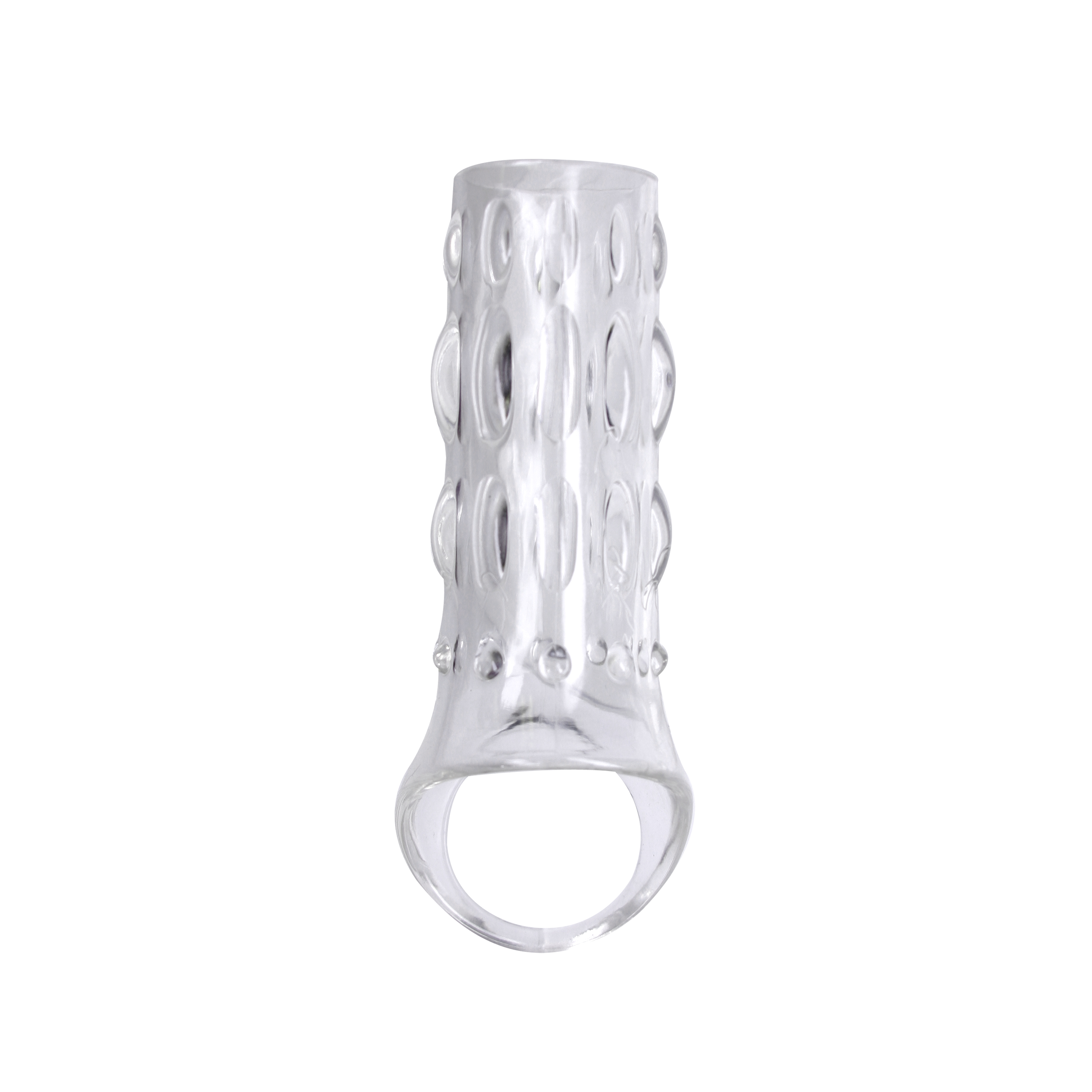 New Sensations NS Novelties Renegade Power Cage Clear. The Reversible Power Cage redefines versatility. Available in two colors, striking black or voyeur clear, this Thermoplastic Elastomers TPE power cage features large defined nubs to pleasure your partner during penetration. Flip the cage inside out and experience the textured surface yourself! TPE is stretchy, non-sticky, water-play friendly and enjoyable with lubricant. Easy to put on. Easy to clean. Add a little more easy to your intimate encounters. Bulk weight 3.60 ounces.
