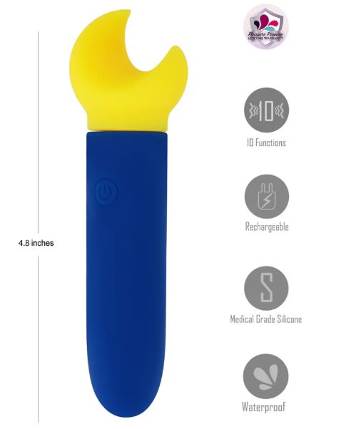 SAYLOR is compact and ready to travel. Remove the cap to reveal the USB Connector. To charge, simply plug right into any USB port, with no charging cable needed. Coated with Silicone for a body safe experience, SAYLOR features 10-vibrating functions, and is splash proof and includes Pleasure Promise Lifetime Warranty. Operating InstructionsPress and hold the Push-Button for 3 seconds. The light will turn solid and the vibration will start.Press and release the Push-Button to cycle through the 10-vibration settings. Press and hold the Push-Button for 3 seconds to turn your item off.Charging InstructionsRemove the cap from the bottom of your item to reveal the USB charging connector.Plug your item into any USB plug to begin charging. The light will begin to flash. When your toy Is fully charged, the light will become solid.