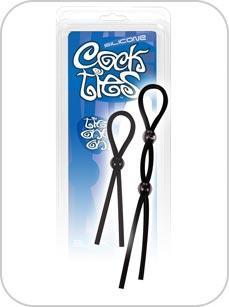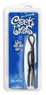 Silicone Cock Ties is available in two colors: Purple and Black. Each sold separately. Complete with one cock tie and one cock and ball tie depending on your desire. Easily adjustable by simply sliding the bead up or down. Slip one of these penis ties on and enjoy the ride of your life. Made of high quality and hygienically superior silicone, these rings are super stretchy and will adjust to accommodate most sizes. This two ring set features one tie for just the penis and another for the penis and testicles. The clear ball accents are used to adjust the sizes of these completely sturdy and flexible ties offering you long-lasting erections and helping to prolong ejaculation. Circumference 3.14 inches. Dimensions 7.00 inches long, 1.00 inch wide, 0.50 deep.. Features: One Silicone Cock Tie, One Silicone Cock and Ball Tie, Phthalate-Free, Sil-A-Gel. Doc Johnson Novelties.