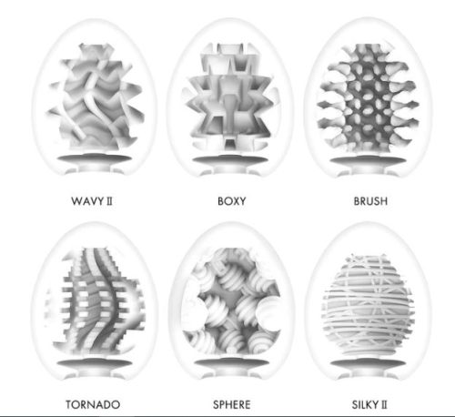 Stretchable to accommodate larger sizes, yet compact enough to fit in your pocket. Discreet on the outside but packed with a thrilling array of bumps, crevices, and wavy ridges that will keep you coming back for more. Every EGG in this series will make you rethink what a pleasure item can be.Included in this pack:EGG – WAVY IIEGG – BOXYEGG – BRUSHEGG – TORNADOEGG – SPHEREEGG – SILKY II
