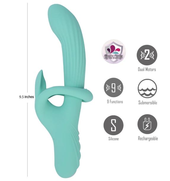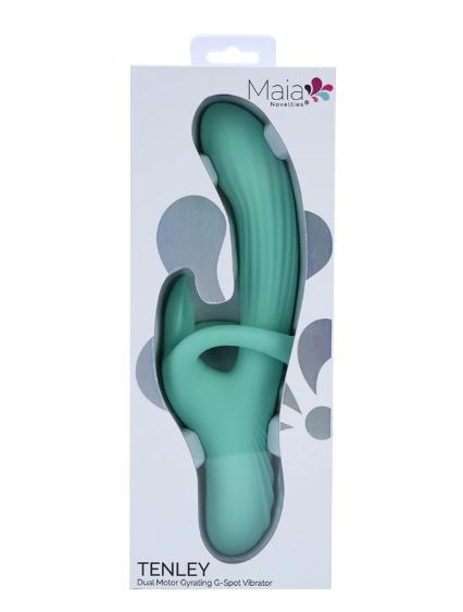 Experience a new level of pleasure with the TENLEY Gyrating Dual Motor 9-Function Luxury Vibrator from Maia Novelties. Designed for ultimate satisfaction, its G-Spot shaft delivers intense gyration and vibration, while the innovative clit stimulator features a unique wrap-around silicone ring that allows you to adjust the angle for customized sensations. With 3 speeds and 6 variable patterns, you can easily find your perfect vibe, making every moment uniquely yours.Crafted from body-safe silicone, the TENLEY is submersible for adventurous play and is also perfectly sized with an insertable length of 5-1/2 inches and a diameter of 1-1/2 inches. Rechargeable with a magnetic charge cable included, this luxurious vibrator is ready to play. The TENLEY comes with our Pleasure Promise Warranty, which lets you explore your desires with complete confidence.FEATURES: Dual-Motor Design, Dual Independent 3-Speeds with 6-Variable Patterns, Gyration and Vibration, Wrap-A-Round Ring for Customized Stimulations, Body Safe Silicone, Submersible, Magnetic Charging with Cable Included, 9-1/2″ Length, 1-1/2″ Diameter, 5-1/2″ Insertable Length, PLEASURE PROMISE LIFETIME WARRANTY