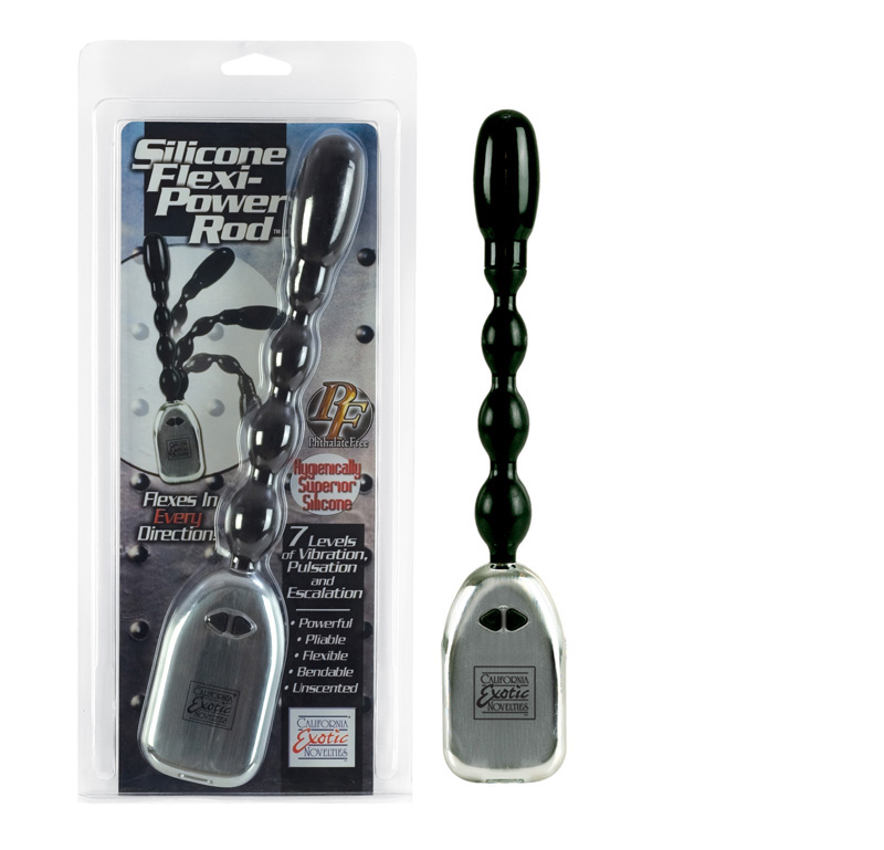 (WD) Silicone Flexi Power Rod flexes in every direction. High tech Silicone power rod flexes in a multitude of directions. Features 7 infinite and powerful levels of vibration, pulsation, and escalation! Safe and pure for body and pleasure. Made using phthalate free, non-toxic materials ABS plastic control, Silicone power rod. Rod stimulator measures 8 inches long by 1.25 inches wide. Vibrating sex toy requires 3 AA batteries, not included. Always clean before and after use plus between partners. To increase the life of all sex toys remove the batteries prior to storage. Category: For Women, For Men, Anal Toy, Anal Toys, Probe, Probes. Silicone Flexi Power Rod is a registered trademark for California Exotic Novelties. Sex toys and sexual wellness. No longer available. 2023.
